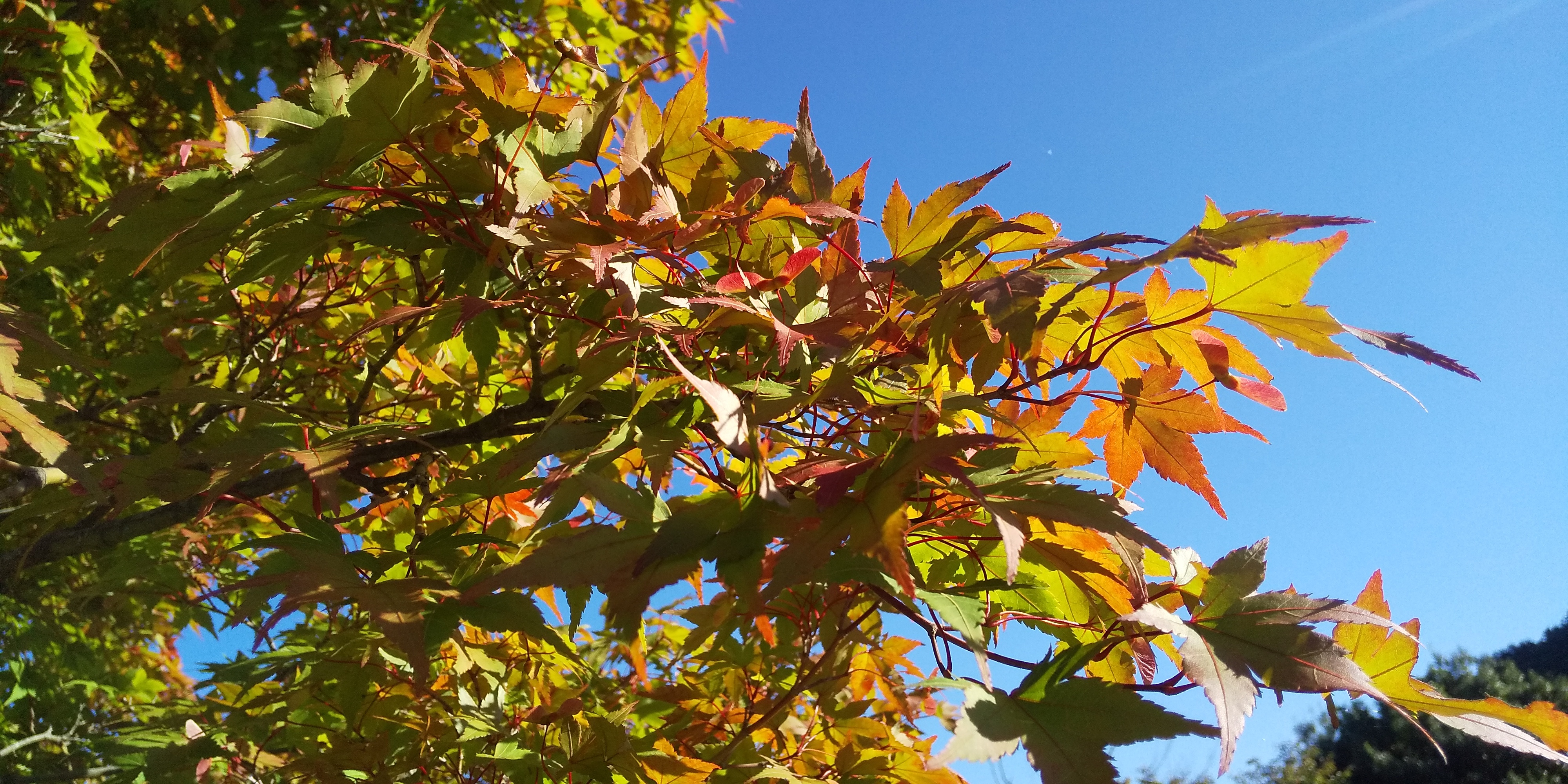 木のてっぺんの方や枝の先の方からきれいに色づき始めています。