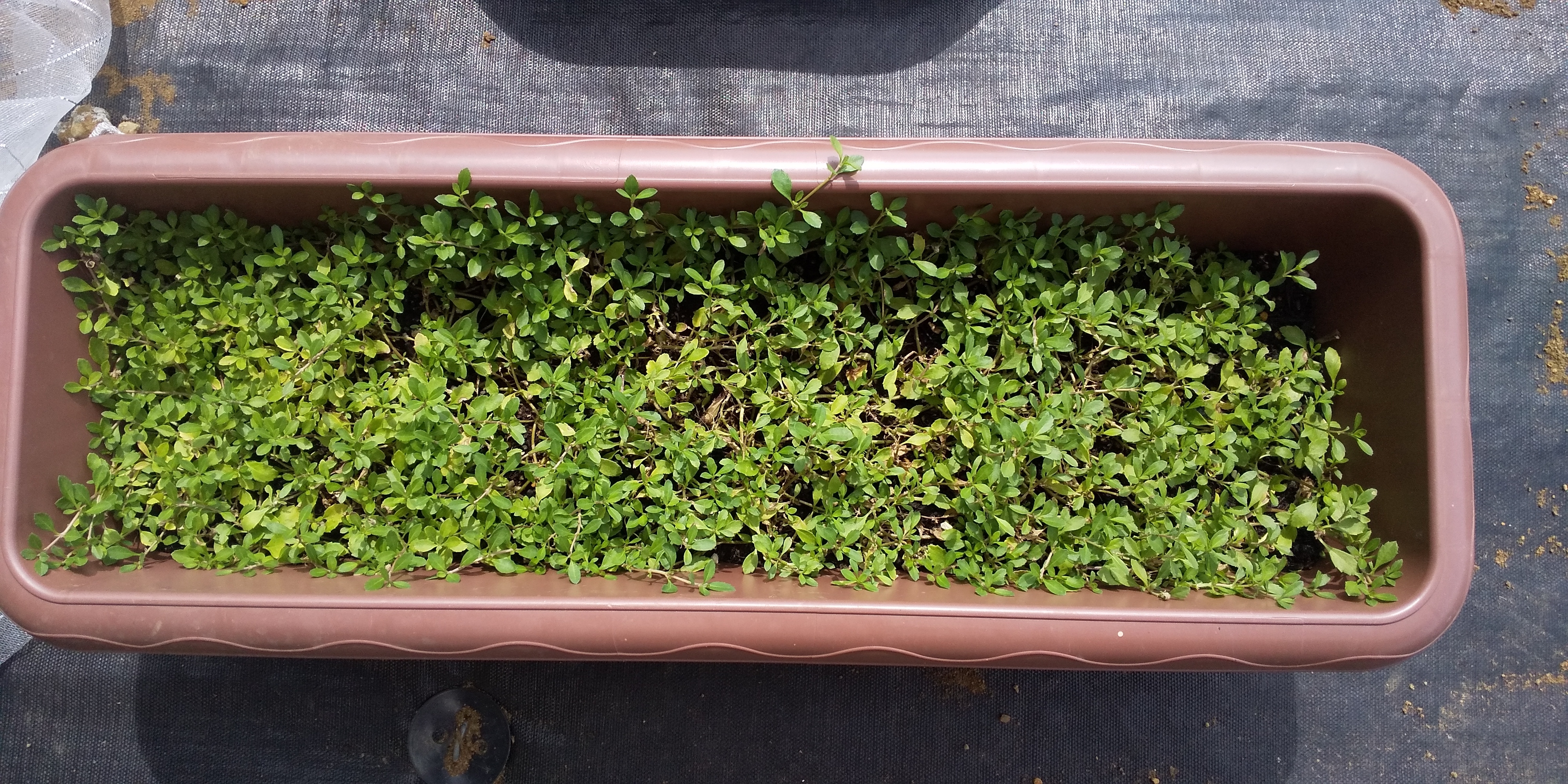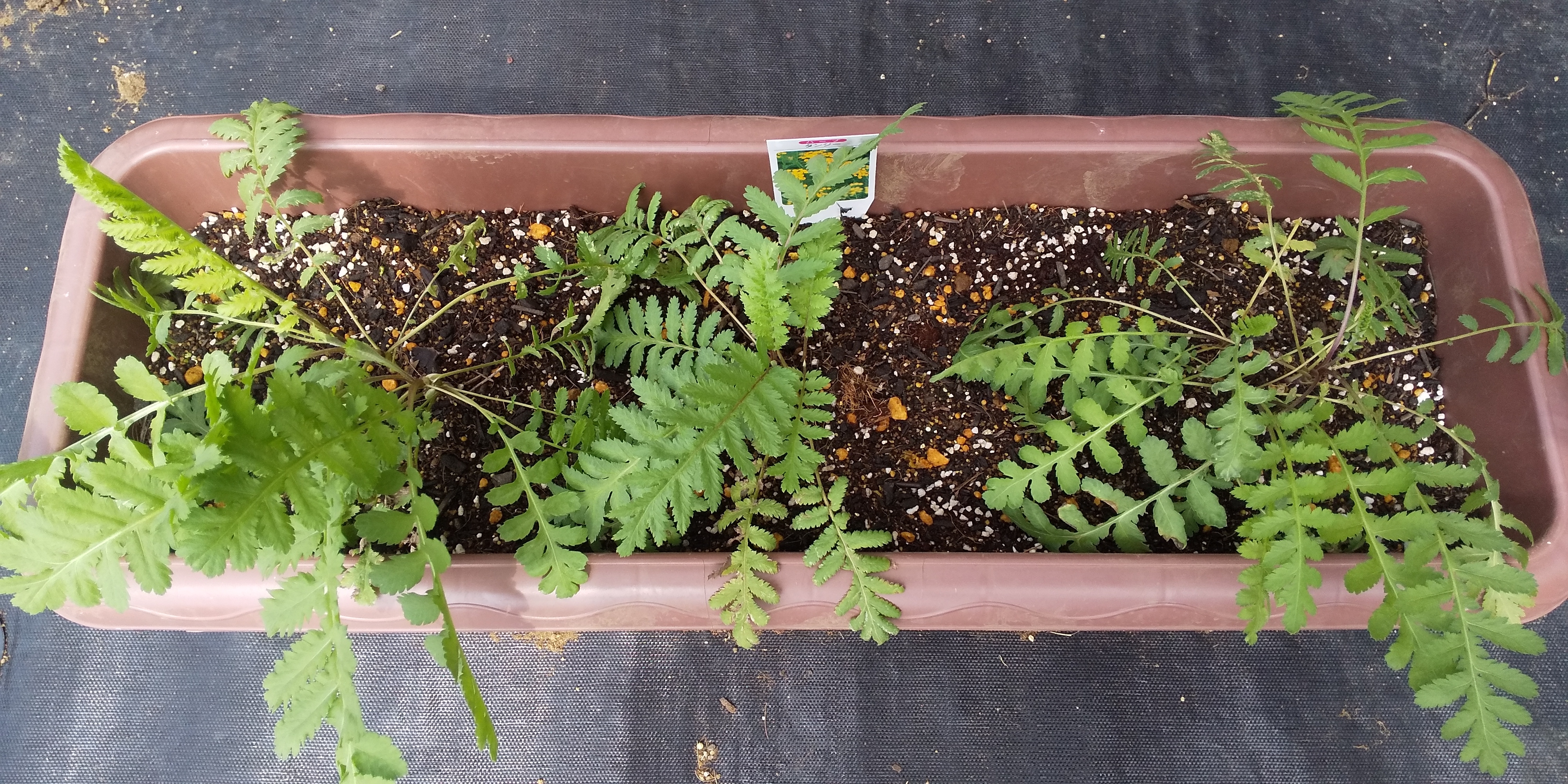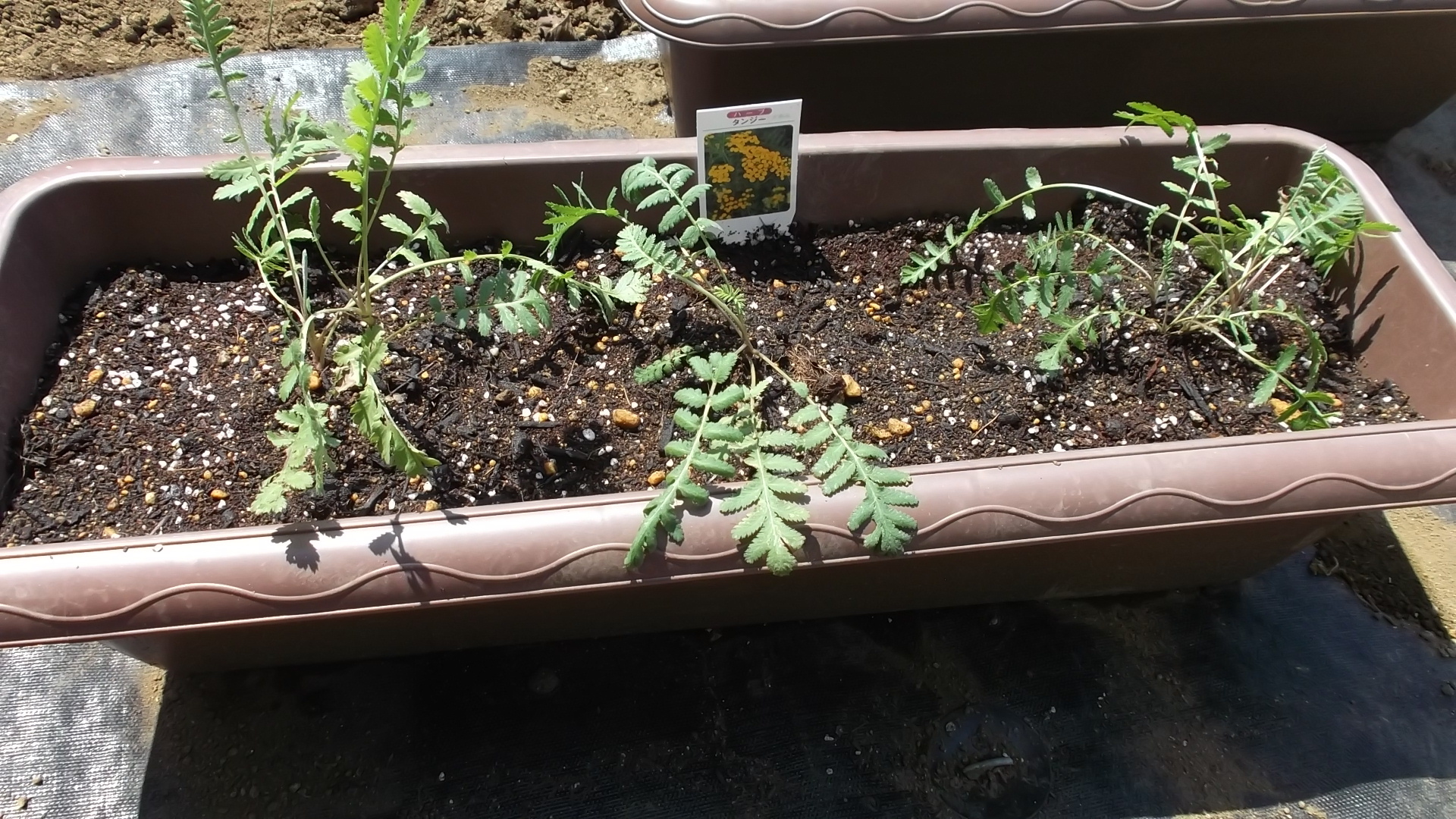 さて、タンジーですが、左がプランターに植えた約2週間前。