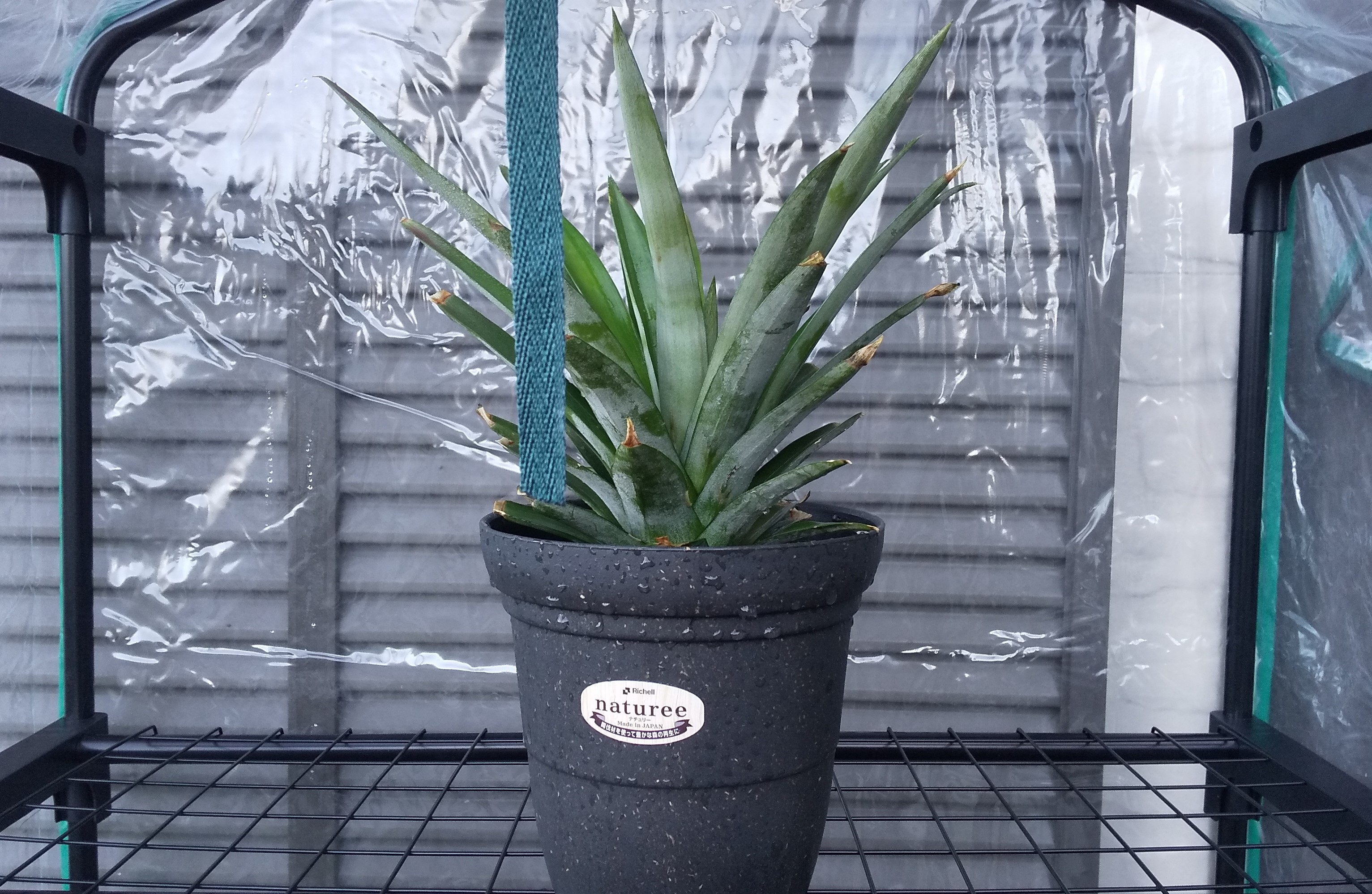 パイナップルの育成温度は15℃以上だそうですが、最近、朝の最低気温が15℃以下の日がチラホラ。