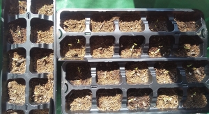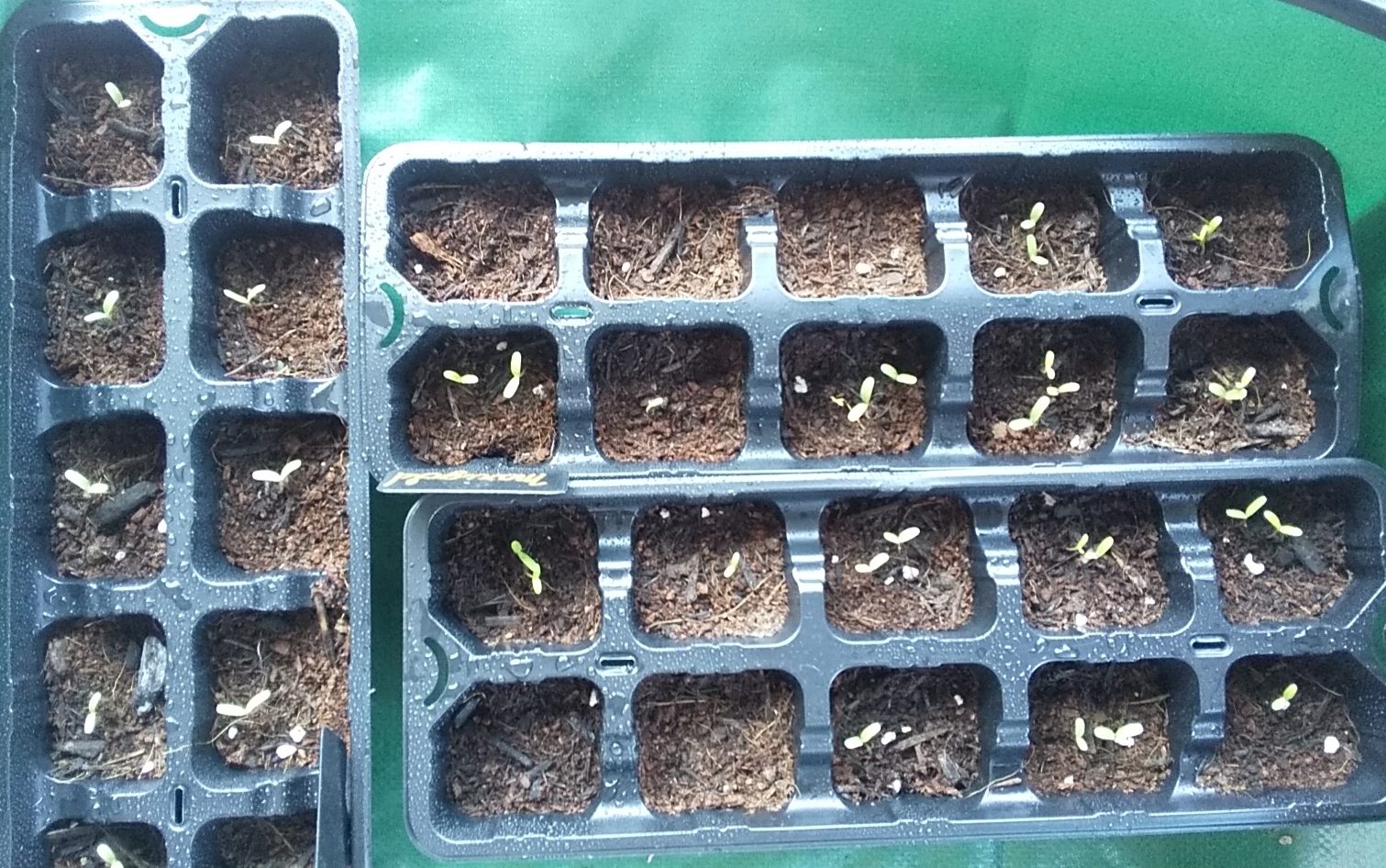 2日前に比べたらだいぶ揃ってきました。が、やはり1つもでない区画は存在しています。何故か左の縦置きしているトレイは全て1芽ずつ出ています。ただの偶然でしょうか?