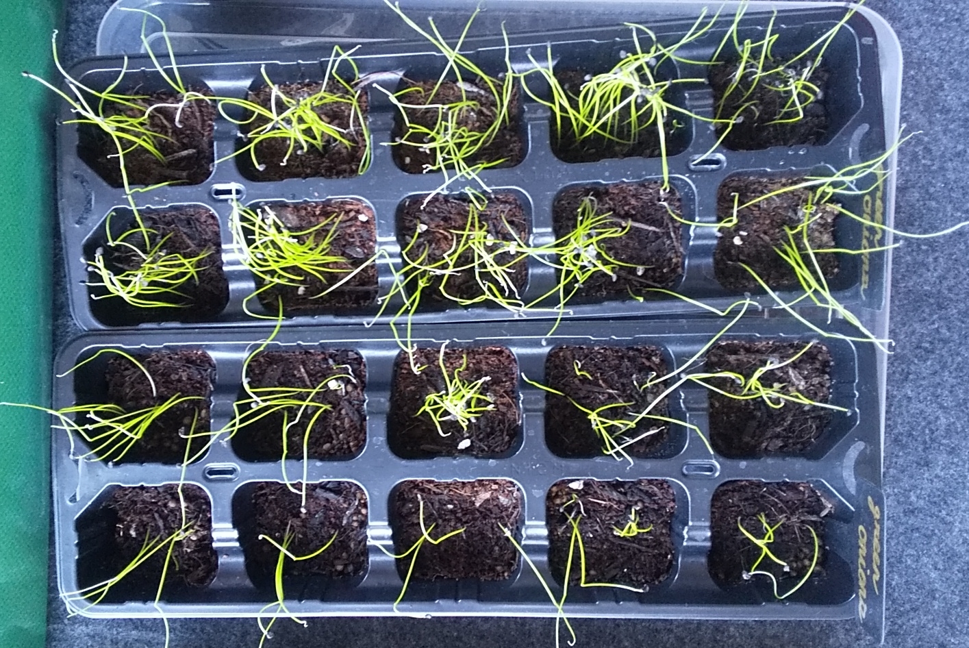 2月26日に播種(Life is raising seedlings.~夏野菜の育苗を始めました~)したネギの現在(播種9~14日目)の様子です。