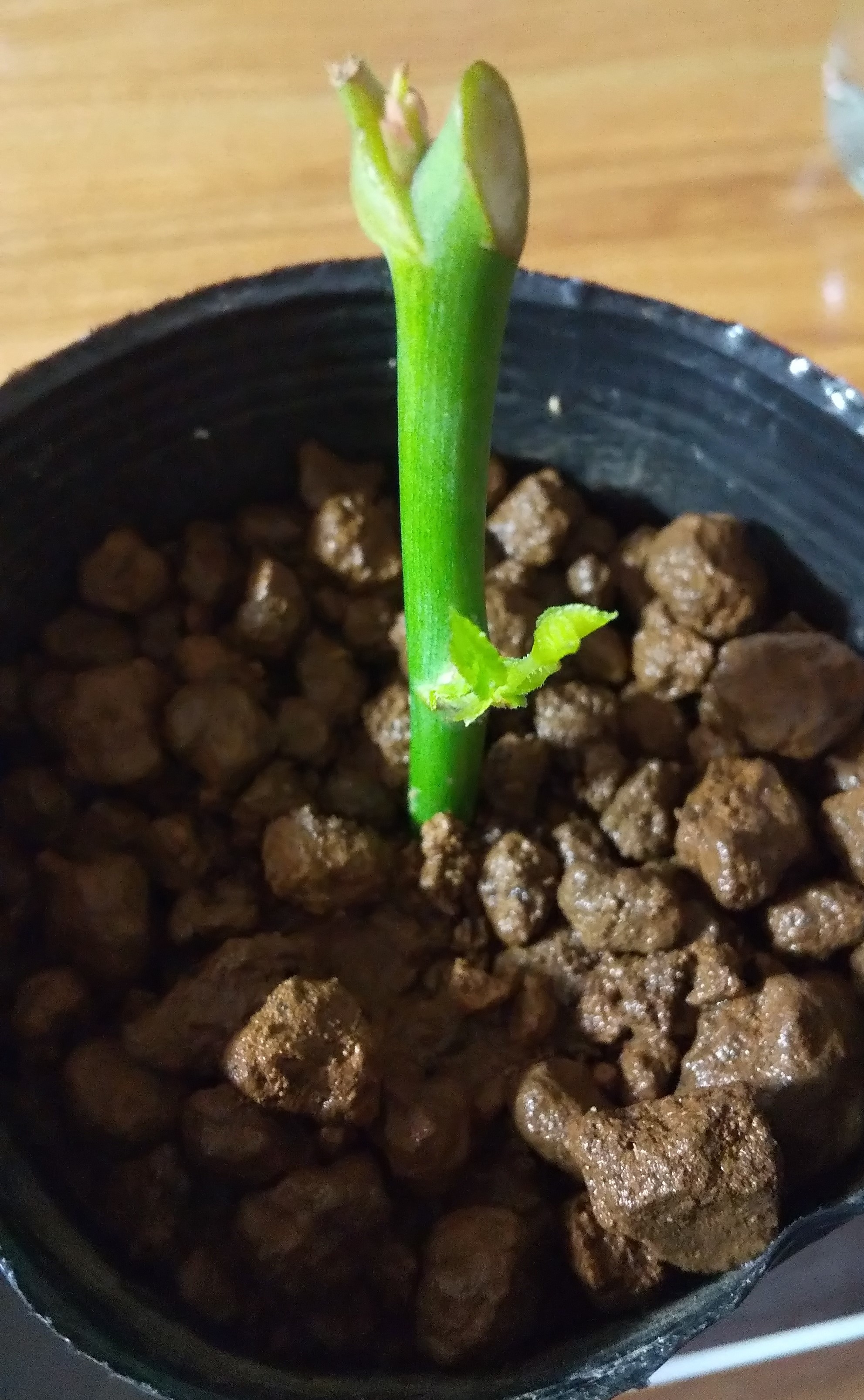 ただ、この状態で芽が出ているとはいえ、これは茎に蓄えられていた栄養分から最後の力を振り絞っている状態だそうです。根が出なければこのまま枯れてしまう事も多いそうなので、全く安心できる状態ではないそうです。