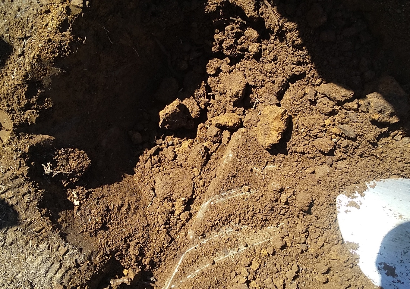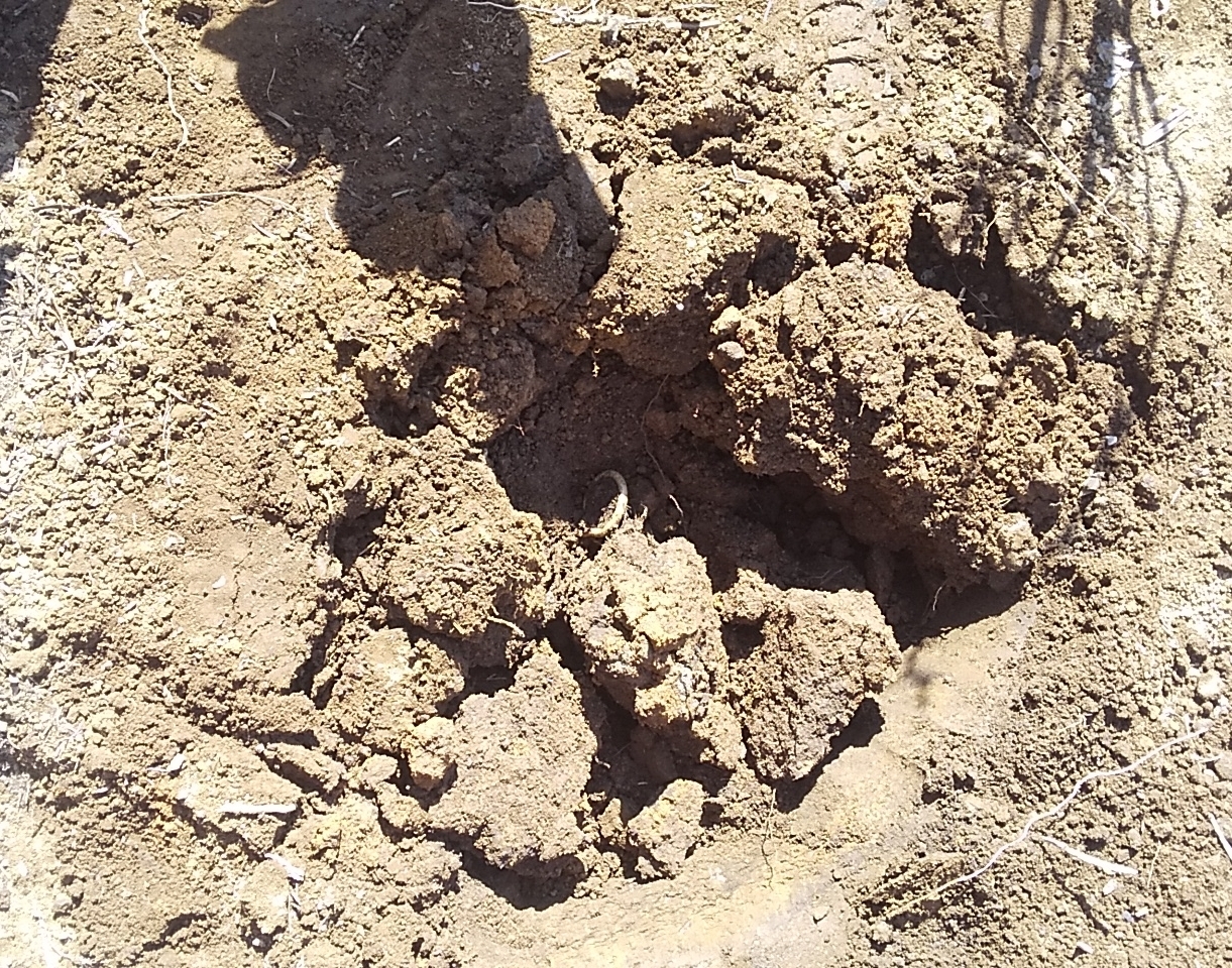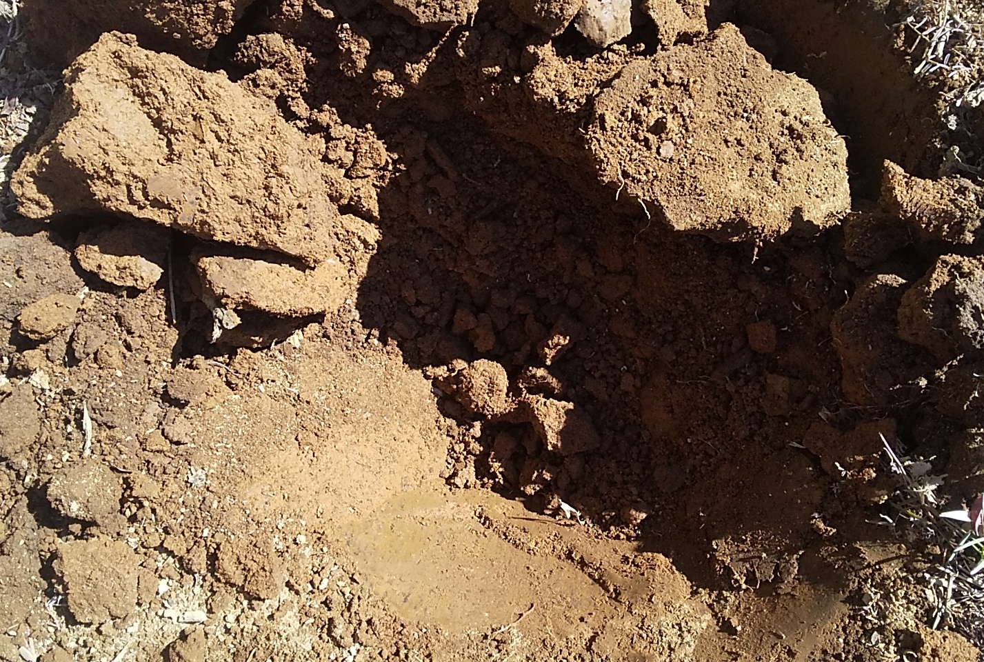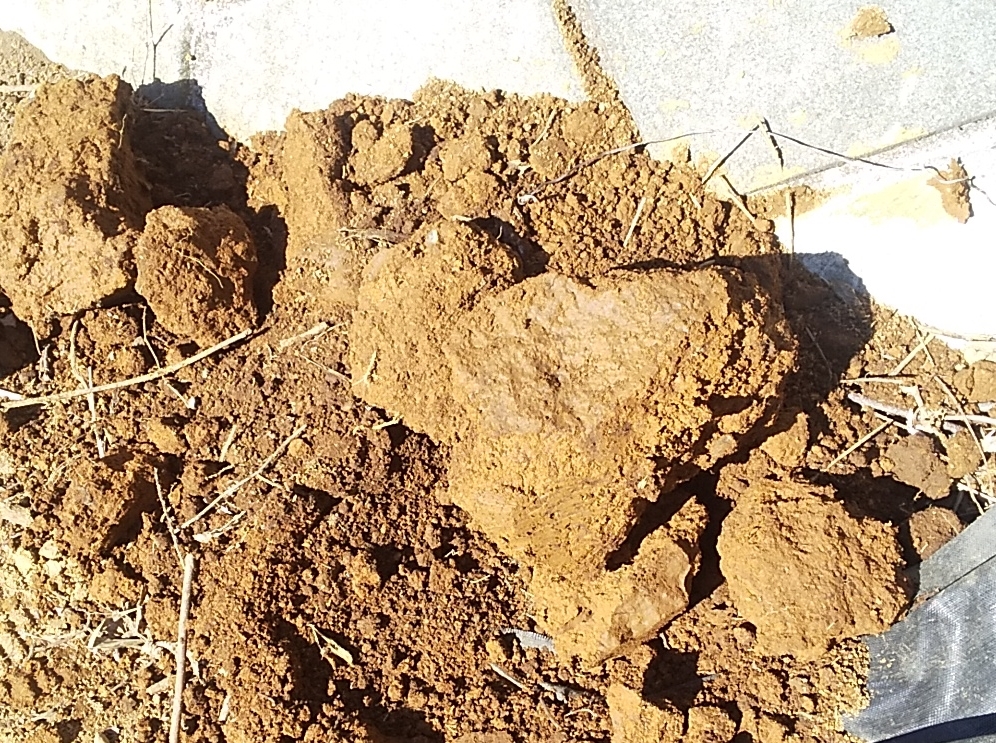 掘れないほど固い場所はありませんでしたが、出てきた粘土の塊は大きなもので20×30㎝くらいの大きさ。スコップで叩いたくらいでは全く崩れません。