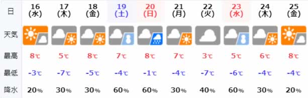 この後も定期的に(何故か休み毎に)雪の予報が。