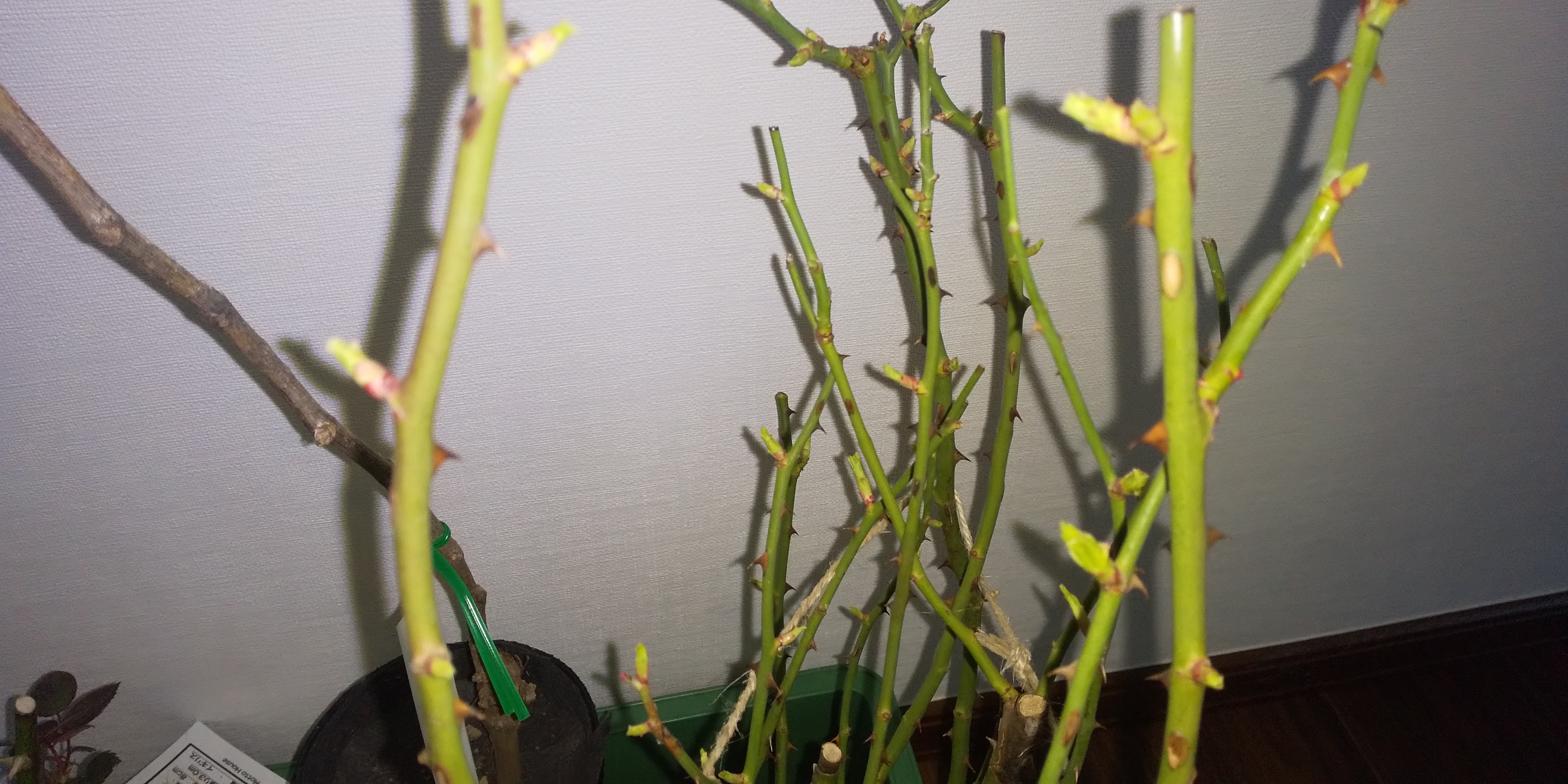 購入後、数日、日当たりのいいリビングに置いておいてしまったら、フランソワ・ジュランヴィルとアンジェラの芽が動き始めてしまったのです!