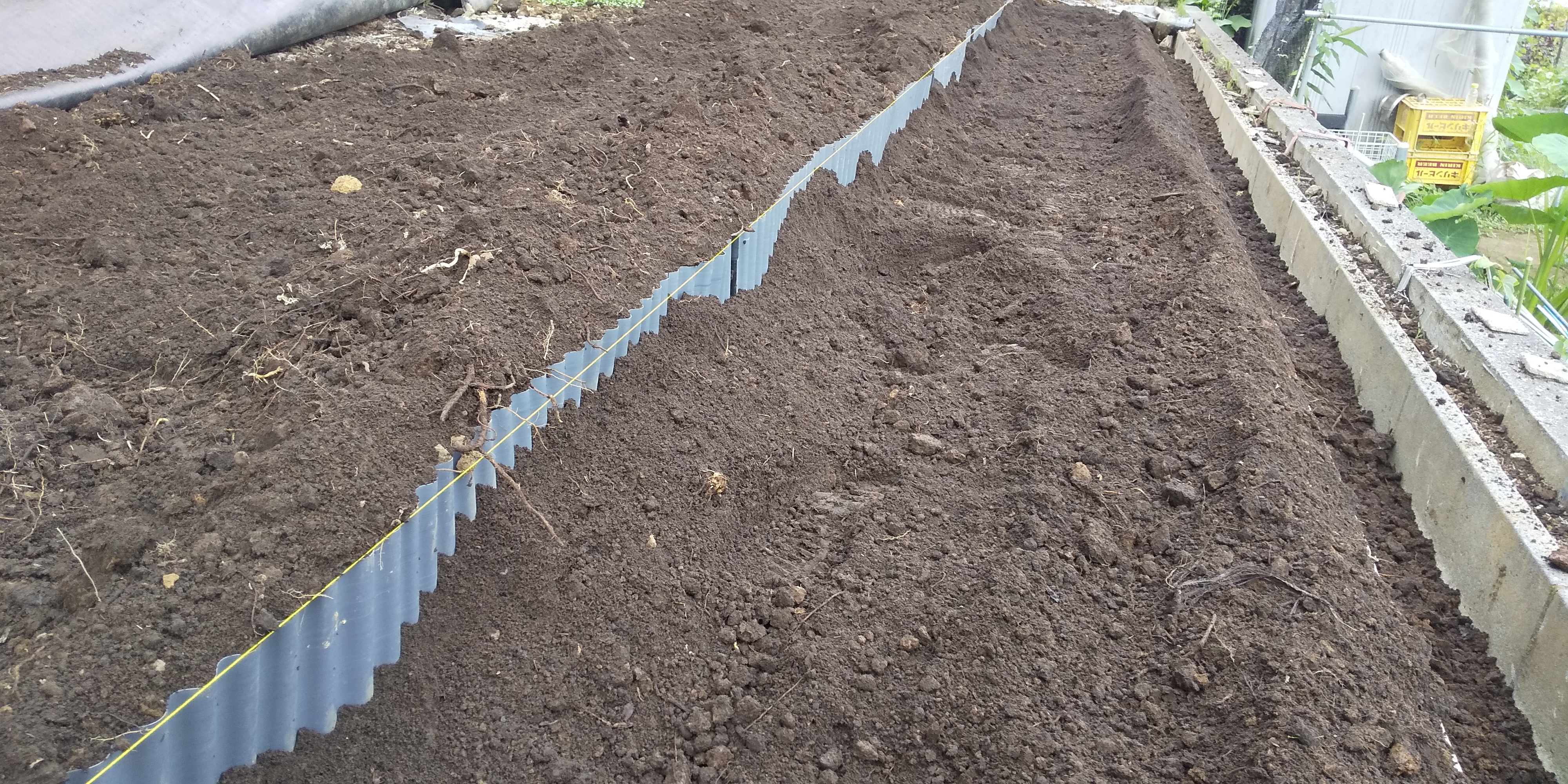 土を耕している間も、均している間もスギナの根を排除し続けます。この土地はどこを掘ってもスギナの根がすごいです。(;´・ω・)