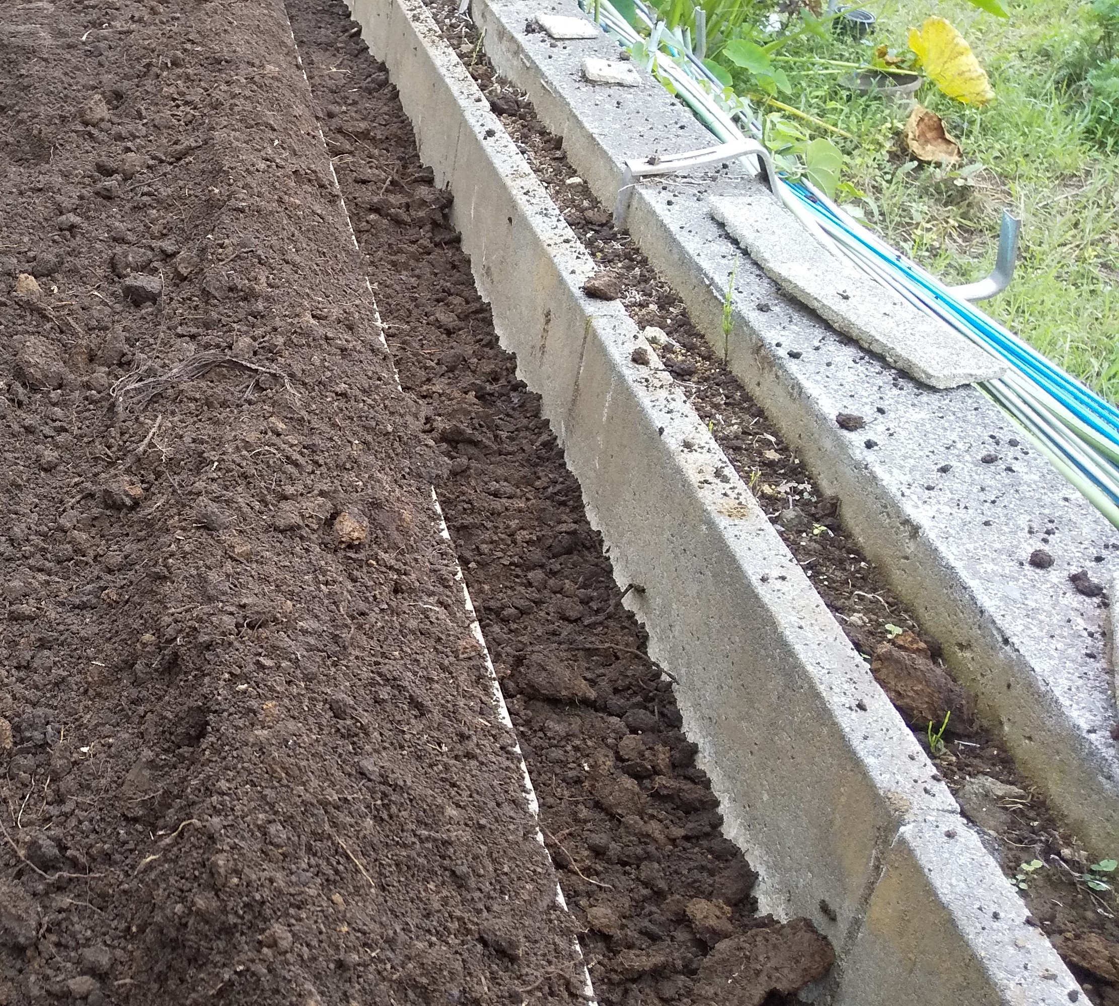 土止めを固定するところまでで力尽きて作業が止まっていたので、今日はこの上下の面を平らにしました。