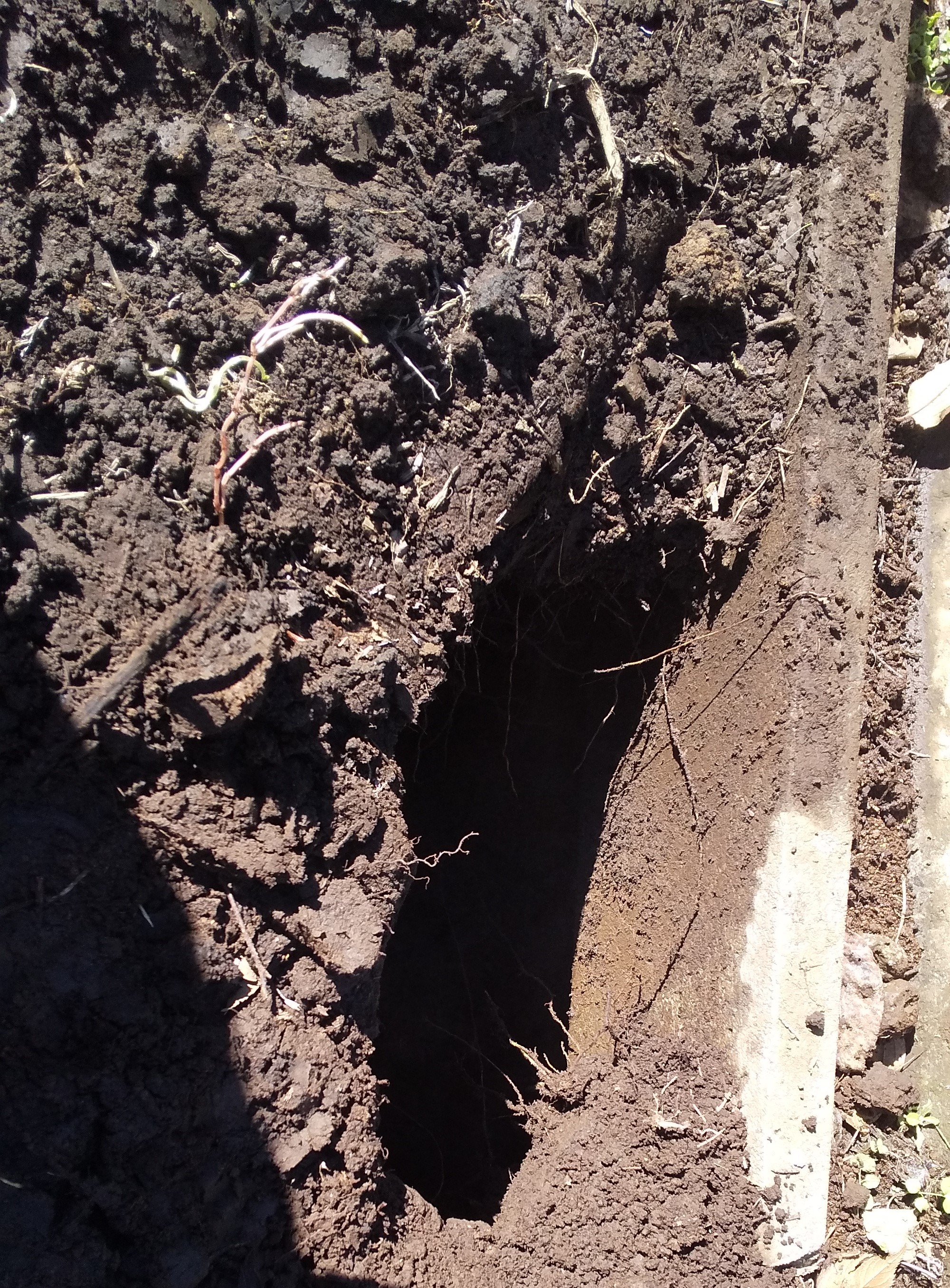 庭の地下に、大人が2~3人は入れそうな地下空間を発見しました。(;’∀’)