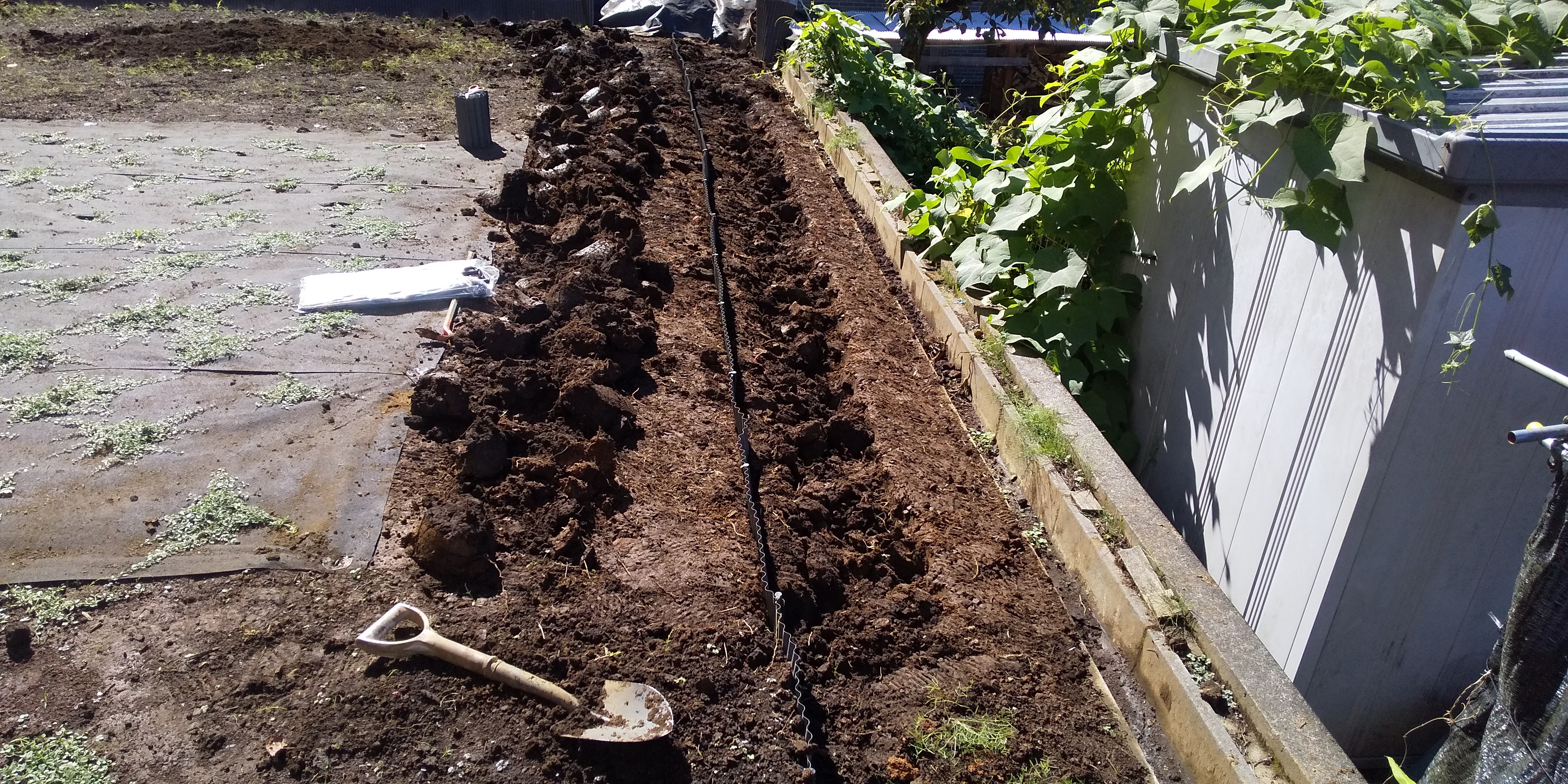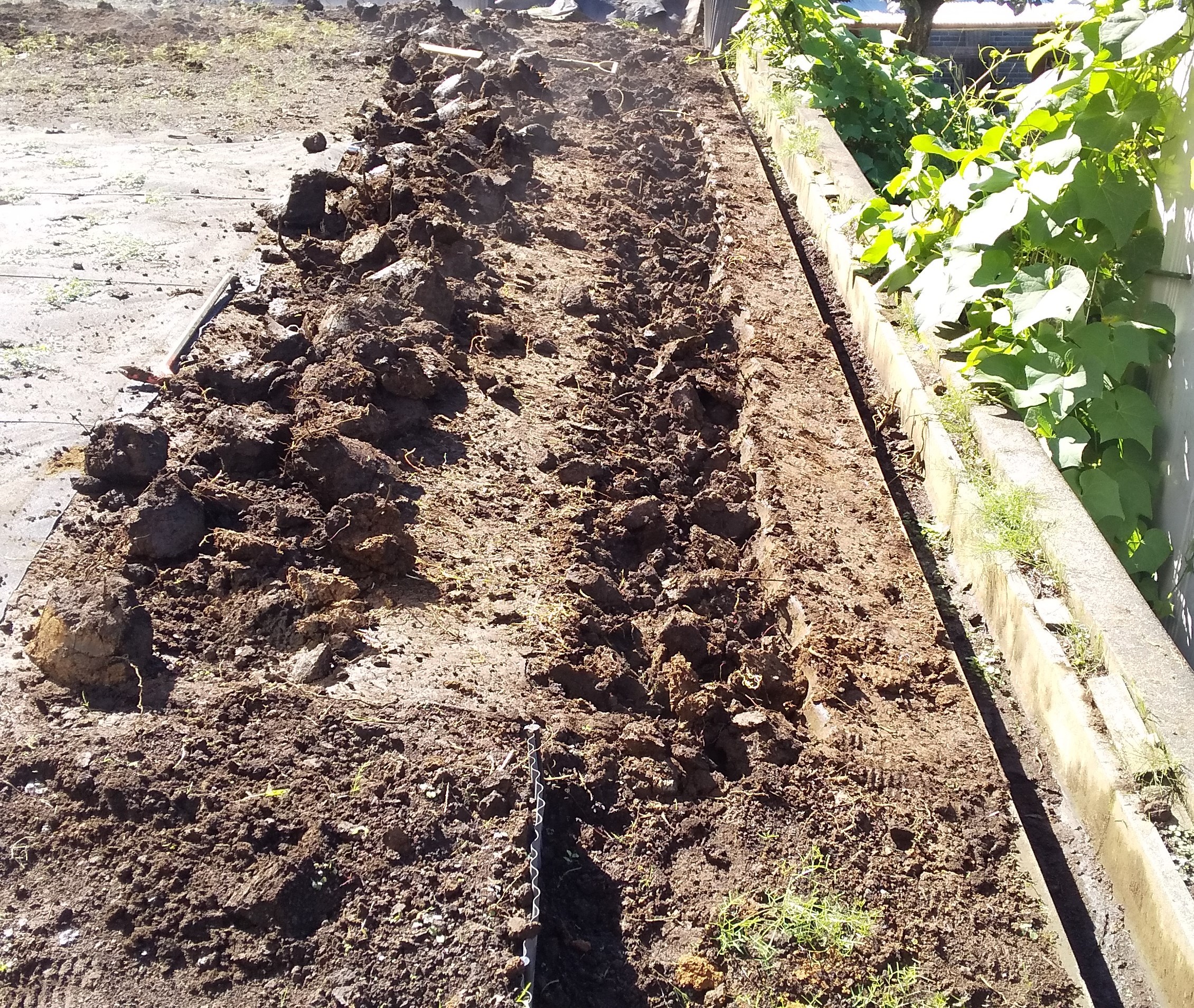 その続きをやろうと新たなエリアの下側の土を上にあげる作業をしている最中。