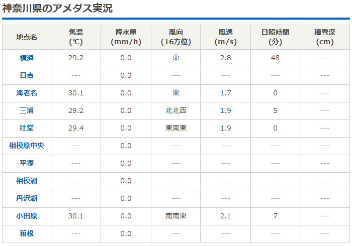 アメダス神奈川県(表)(引用:tebki.jp)